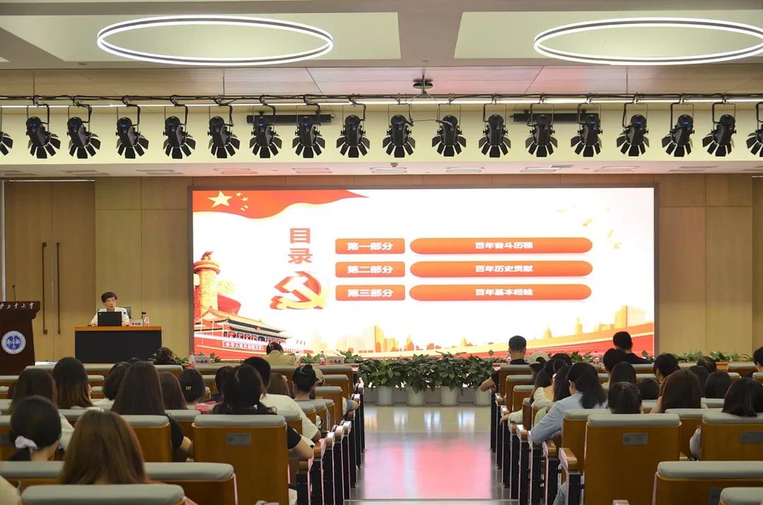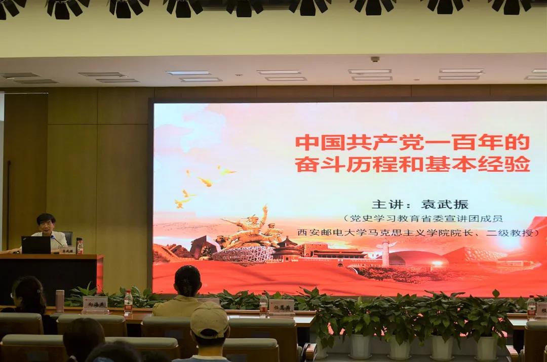 党委邀请党史学习教育陕西省委宣讲团成员、西安邮电大学马克思主义学院院长袁武振来我校图书馆报告厅作《中国共产党一百年的奋斗历程和基本经验》主题报告。