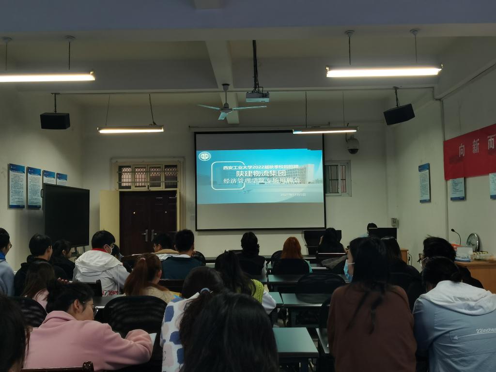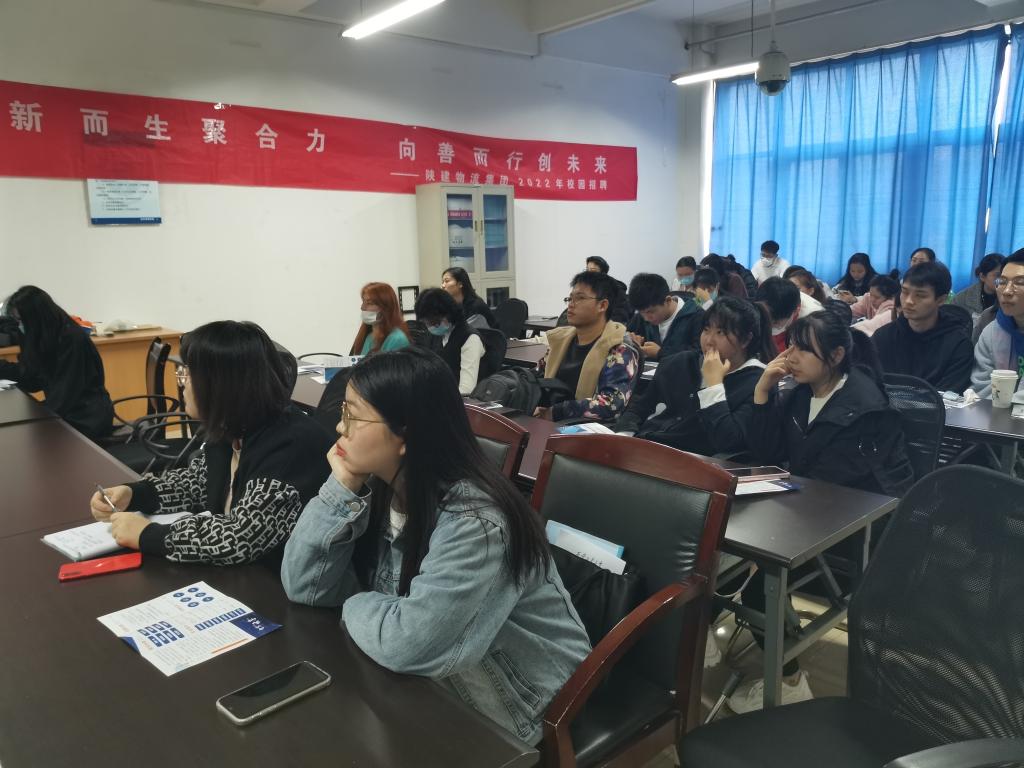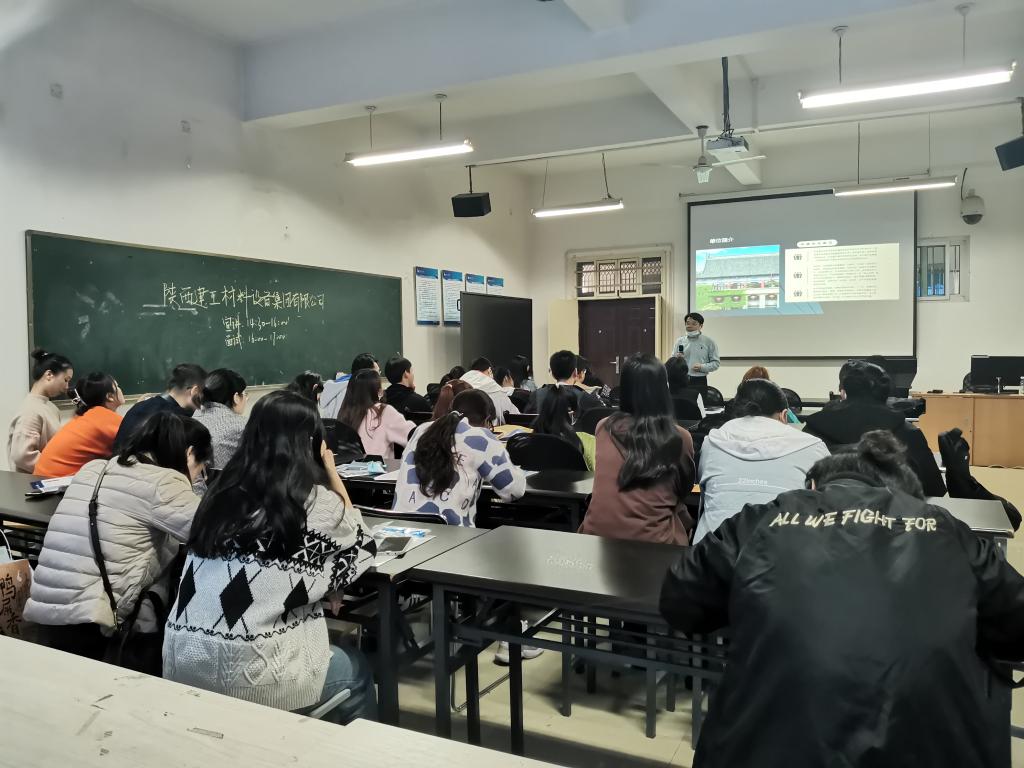宣讲开始后,陕建物流集团HR就公司背景、管理体系、产业项目、人才梯队建设、福利待遇、evolution平台等方面对在场同学做了充分讲解,表示陕建物流集团是一个充满活力的队伍,正处在数字化转型的关键时期,将通过信息互联、数据协同,打通供应链链接产业链,打造全国独具特色的建筑行业电商平台。公司目前在业务运营、财务管理、人力资源、行政企划等岗位需要大量人才,真诚邀请经管学子加入陕建物流集团!