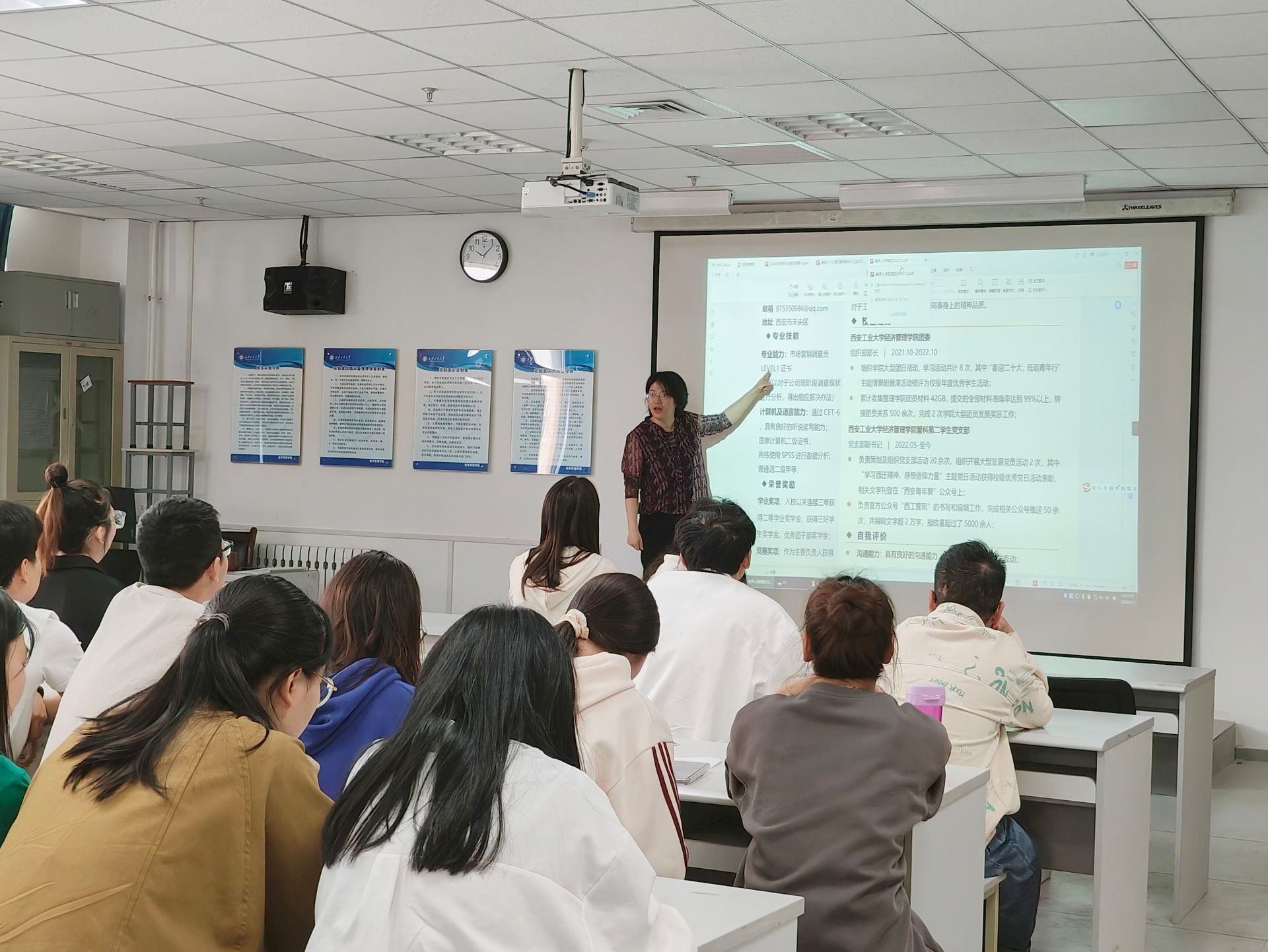 于4月16日上午在教9-528开展有关简历制作的培训讲座。本次讲座由学院老师曲峡主讲,21级未就业研究生及22级、23级全体研究生参加。