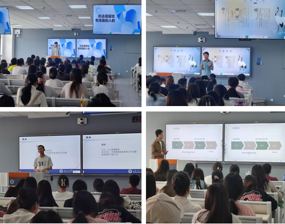 最后20级会计学专业汪凯豪、人力资源管理专业俞杰、张志康、刘兵向大家分享就业经验,分别从就业信息获取渠道、简历制作面试过程中的应答技巧、分享个人面试经历、就业过程中心态的调整等多个方面,帮助同学们树立正确的就业观念、明确就业方向。
