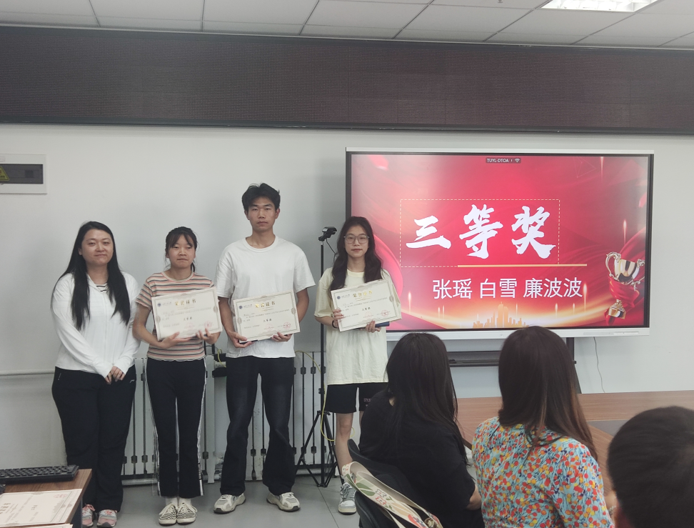 在本次征文活动中,喜腾智同学荣获了一等奖,黄曼青同学荣获了二等奖,张瑶、白雪、廉波波三名同学荣获了三等奖,尚梦如、张博宇两名同学荣获了优秀奖,随后现场老师为获奖同学颁发了荣誉证书和奖品。
