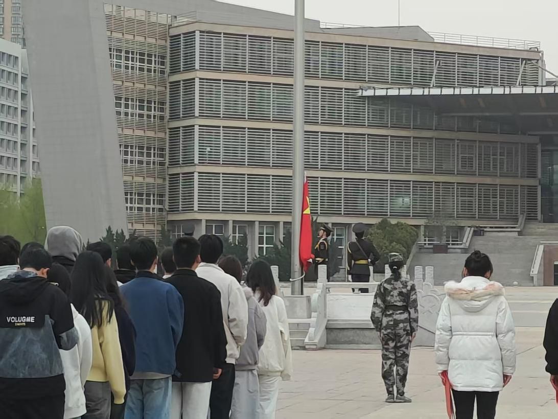 同学们有序列队,等待仪式进行。七时整,国旗护卫队迈着整齐划一的步伐护送国旗走向旗杆。在激昂雄壮的国歌声中,五星红旗缓缓升起,全体师生庄严肃立,面向国旗行注目礼。这一刻,师生们的目光追随着国旗,眼神中满是对祖国的热爱。