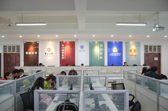 会计模拟实验室使用面积为180平方米,能够同时容纳100人进行实验。会计模拟实验室将企业的各种业务活动及管理活动浓缩于一个实训室内,为学生在较短的时间里全面学习和掌握财会专业知识及技能创造了基本条件。经过模拟实训,学生能从总体上了解模拟企业的性质,规模和机构设置;明确财会部门的工作范围和具体职责,熟悉企业和外部企事业单位的联系,掌握企业内各项管理制度,工作程序和主要业务活动的会计核算步骤和办法,能帮助学生毕业后在较短时间内胜任会计工作。